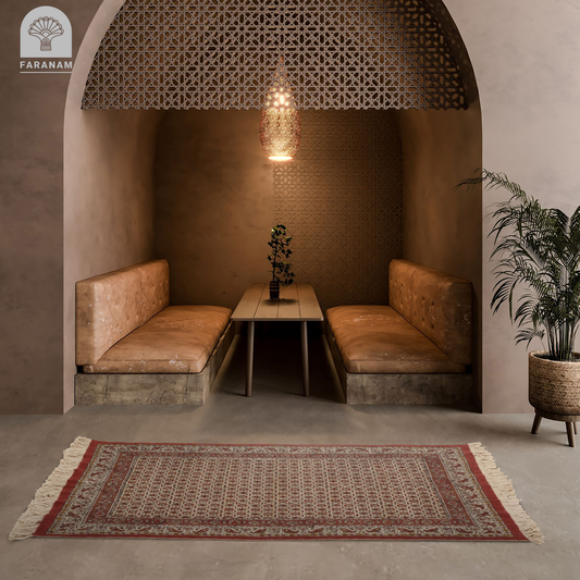 Each rug in this collection is a piece of art, hand-printed using the ancient Ghalamkar technique on 100% cotton. Crafted with rich, natural, and eco-friendly dyes, the textiles feature generations of intricate Persian motifs.