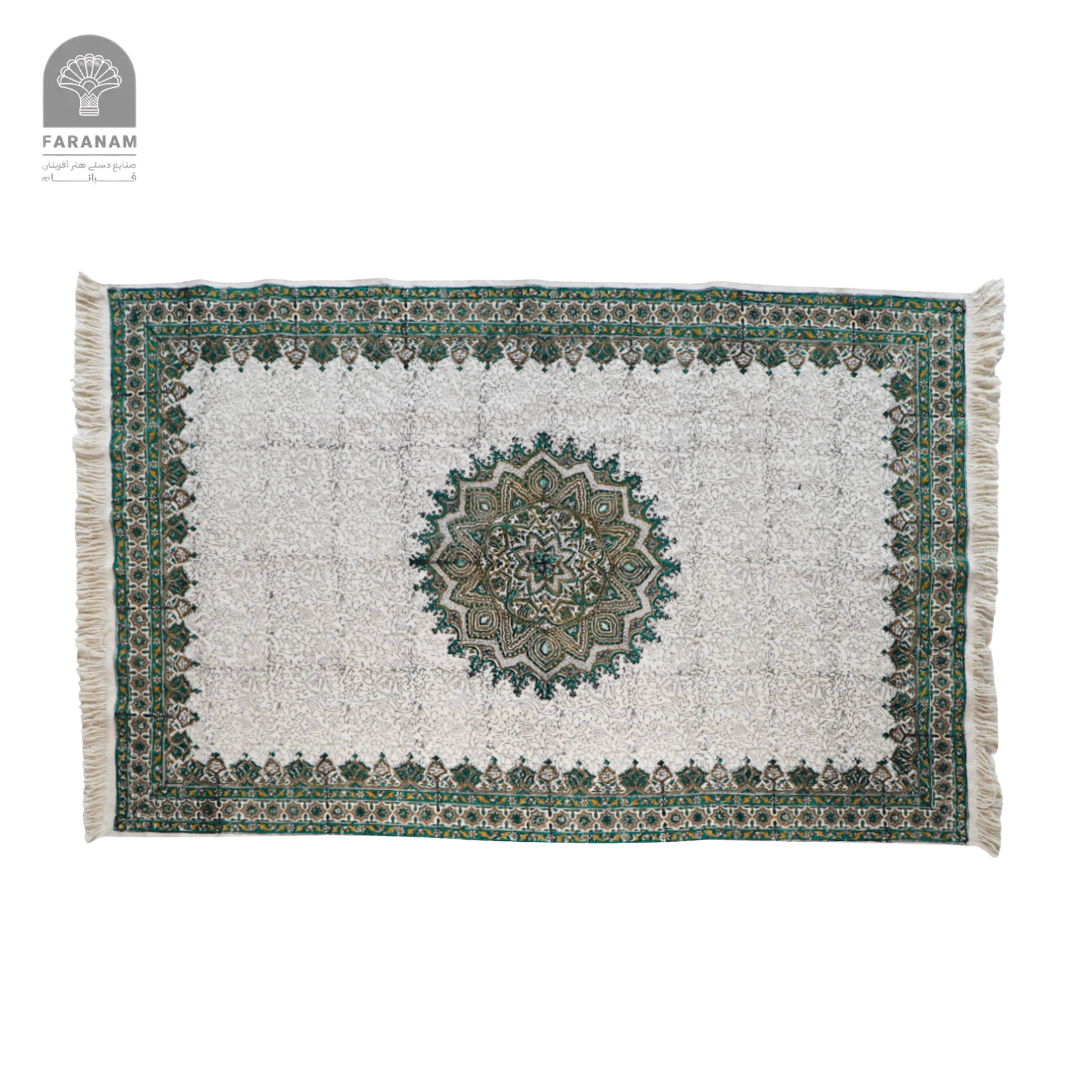 Inspired by Persian minimalism, the peaceful green and white tones reflect traditional designs that bring balance and calm, rooted in the spiritual artistry of Esfahan.